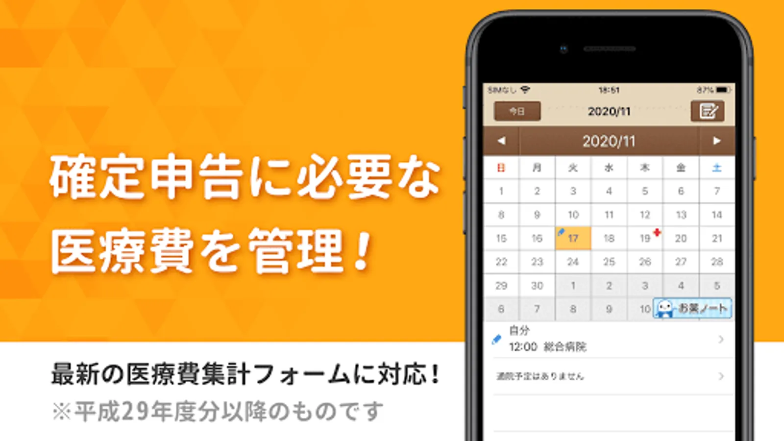 カレンダーに通院日や通院予約した日が表示されるので、後から簡単に振り返れます。