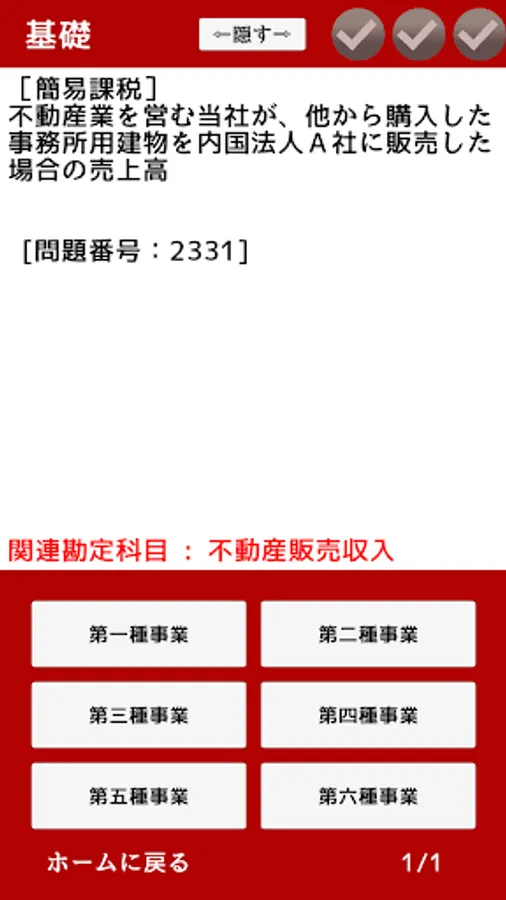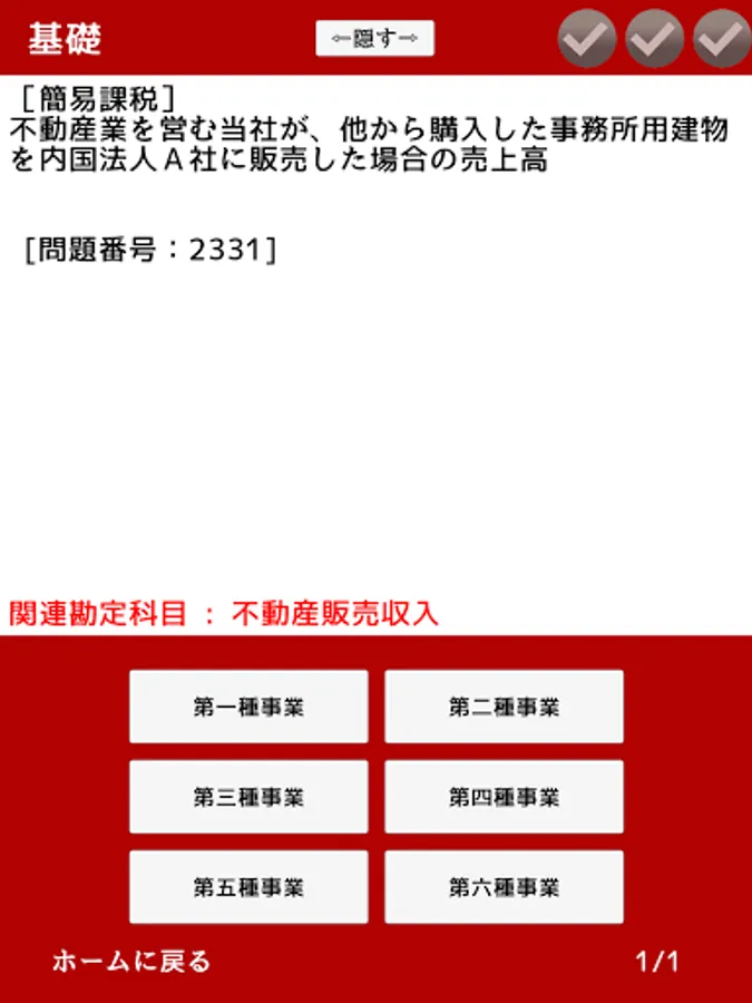 This app is a question-and-answer type problem collection app that trains the ability to judge the handling of various transactions under the consumption tax law. You can study casually and efficiently as if you were solving a quiz game using the following gap time.