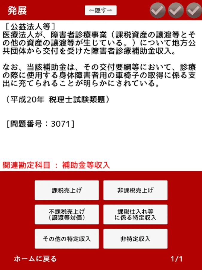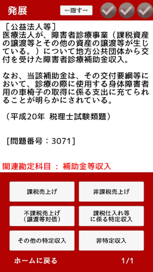 The developer of this application himself also made use of his experience as a student of the consumption tax law for the tax accountant examination, thoroughly analyzing the past questions of the tax accountant examination and creating questions.