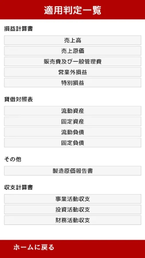 In this app, in addition to determining the application of the reduced tax rate, you can search for the classification determination of the business classification of the simplified taxation system and special cases such as public interest corporations from the application determination list, and solve problems to efficiently train. increase.