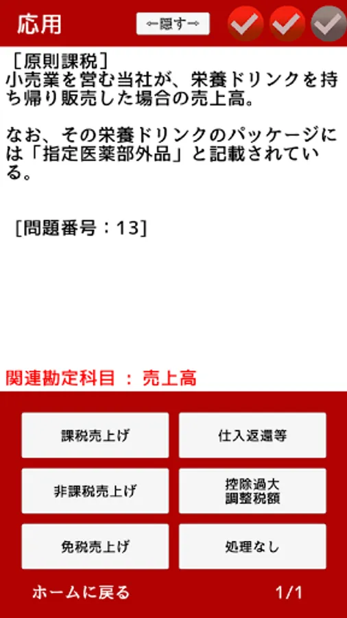 By repeatedly solving the problems of this app, let's train the tax processing ability of consumption tax.