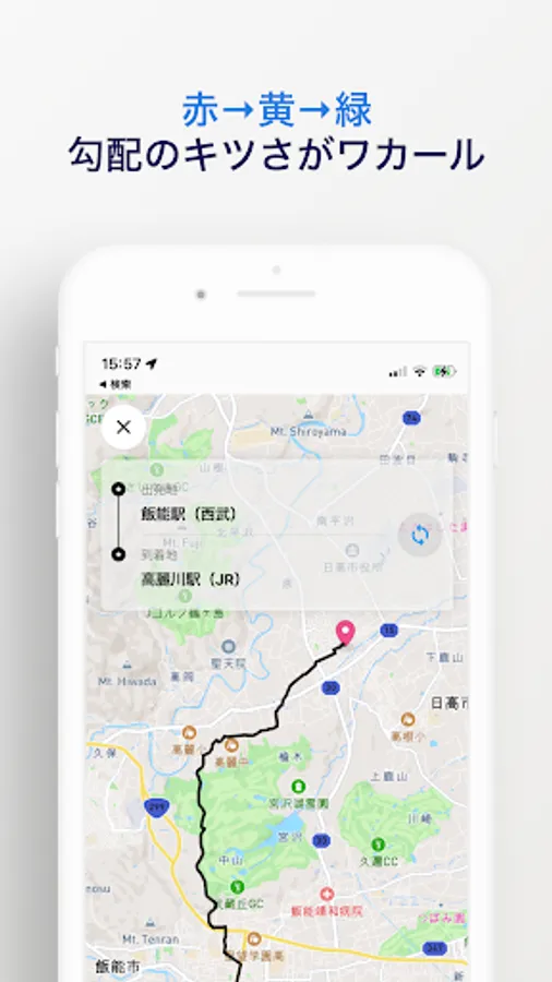 The altitude information of each point, which is the source of the slope, is obtained from the altitude API of Yahoo! JAPAN.