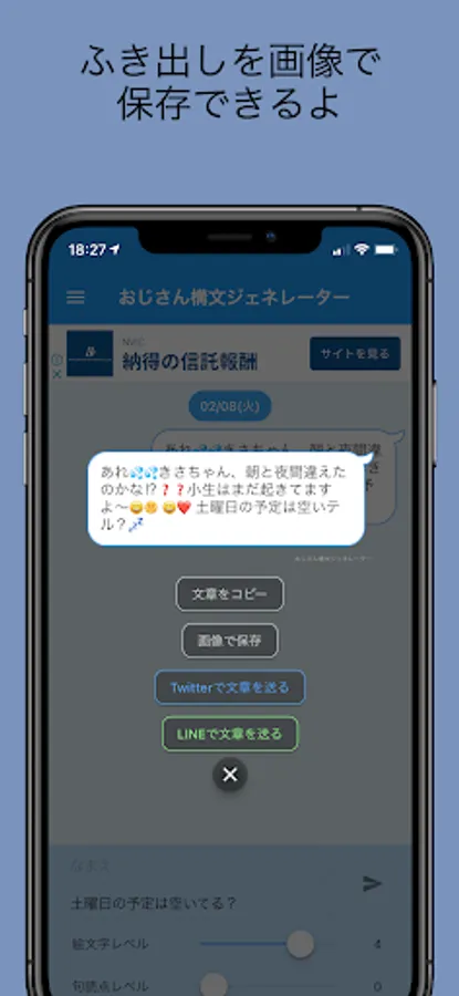 It is an application that randomly generates the uncle syntax that the uncle is likely to send by LINE or email.