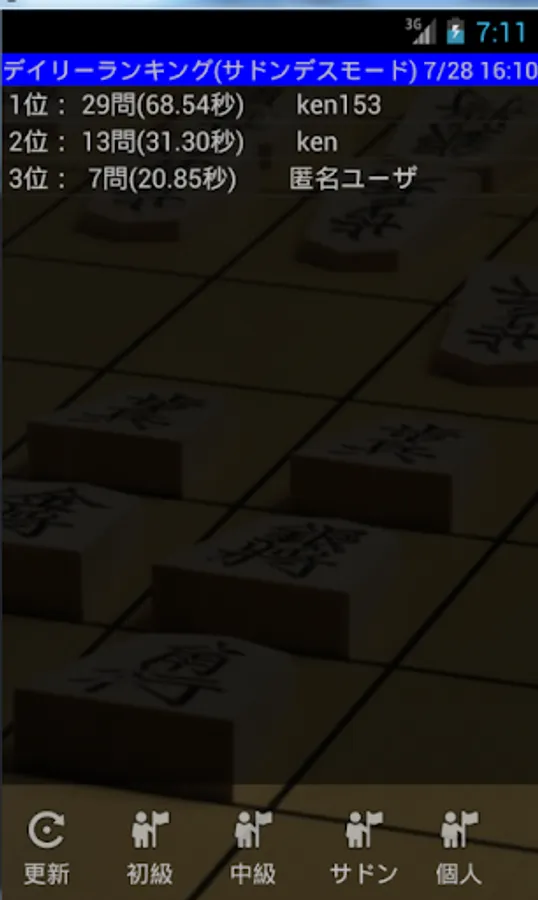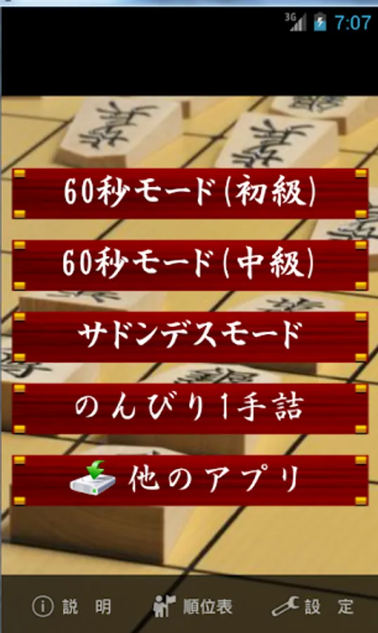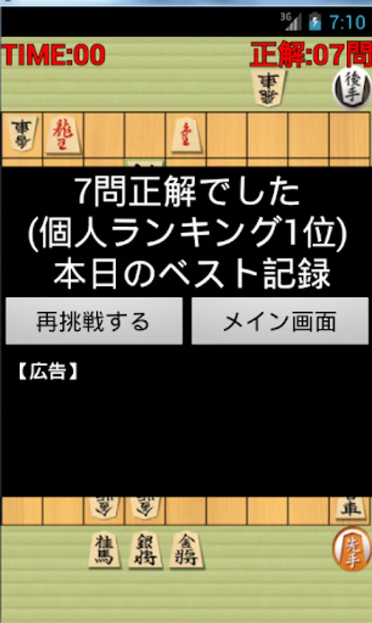 It is the only quick solving game can be a 1 Tetsume of chess problems that are questions at random. You can play a little free time. Compete for the number of problems solved during the time limit of 60 seconds with the "60 seconds mode", there is a "sudden death mode" immediate end of Once mistake there is a time limit for each question. Since it is also available daily ranking of the net, please try aiming for top finishers!