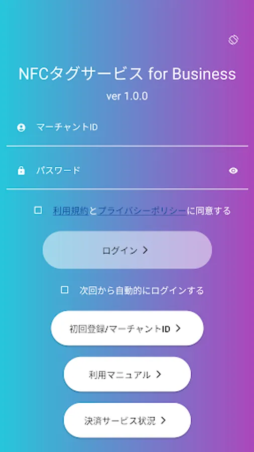 2. Log in with the login ID/PASS described in the "NFC Tag Service Registration Completion Information" sent after applying for the service.