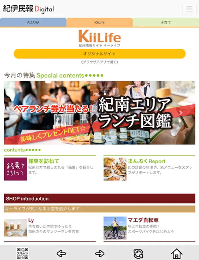 It is an application that delivers news and living information in southern Wakayama prefecture. It also works with the daily newspaper "Kii Minpo" published by Kii Minpo and the free paper KiiLIFE +. When you launch the camera function of the app and take a photo on paper, you can play related videos or display the content unique to the app. News and lunch information updated daily. The navigation function is convenient when you want to go to a gourmet or beauty shop.