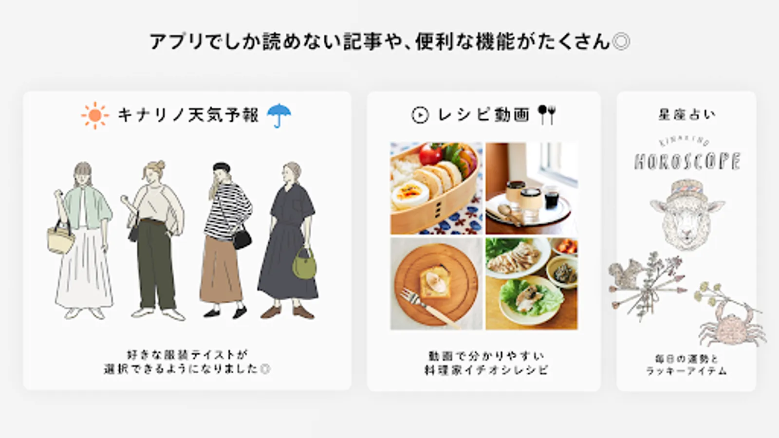 〇 We also deliver Kinarino original contents such as WEB magazines, articles, and videos that are useful for shopping and daily life every day.