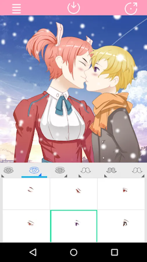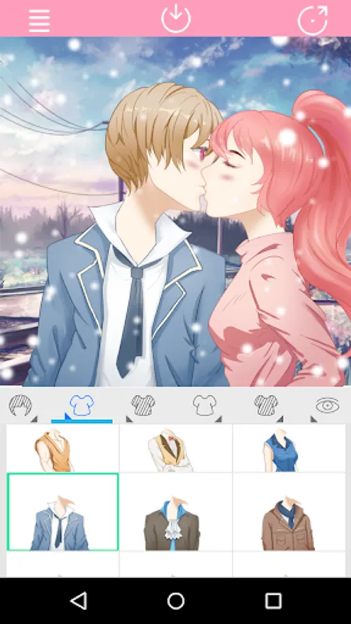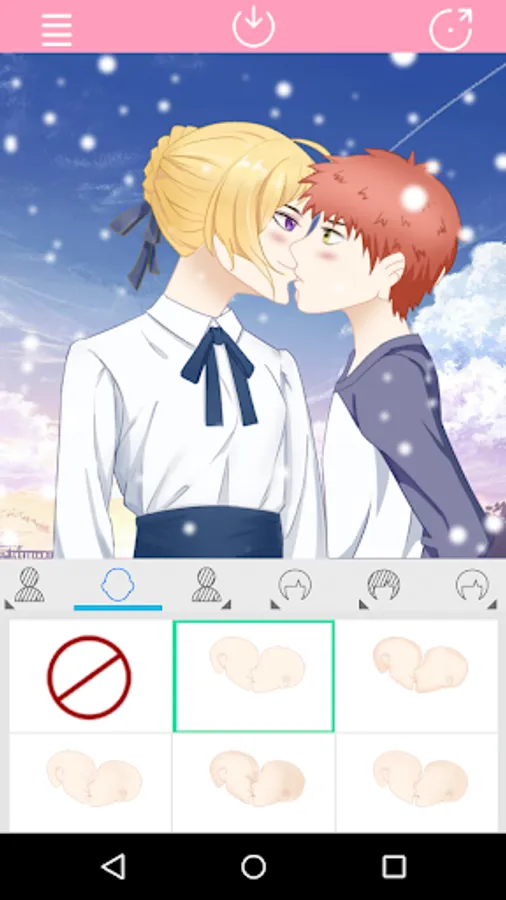 app that can create anime kissing couple character. You can create anime couple by yourself from anime maker features. A kiss can express sentiments of love, passion, respect, greeting, friendship, and good luck, among many others.