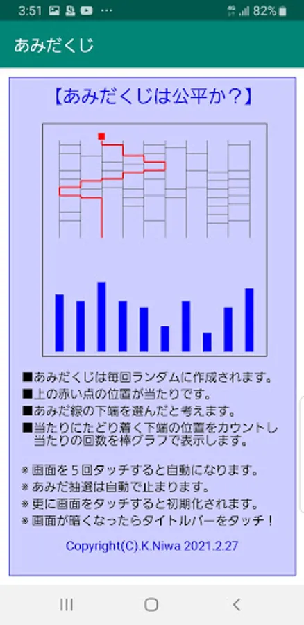Let's draw lots of Amidakuji many times and observe the situation.