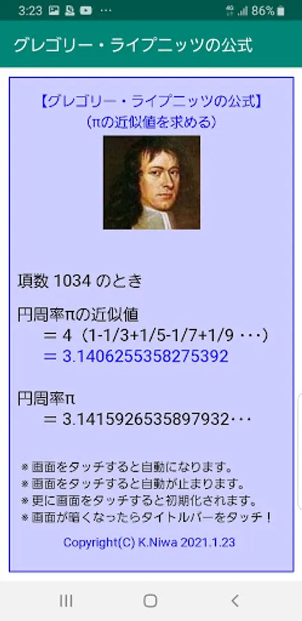 π = 4 ・ (1-1 / 3 + 1/5/1/7 + 1 / 9-...)