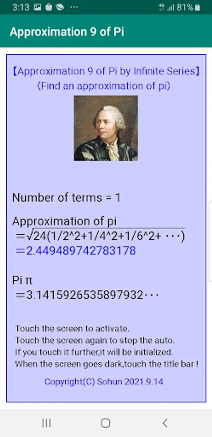Let's observe how the approximate value of pi can be obtained as the number of terms increases.