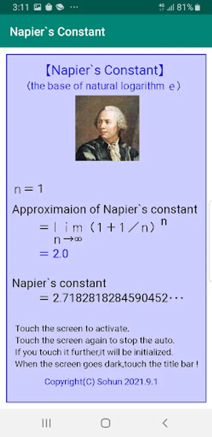 Let's observe the situation of (1 + 1/n)^n when n is increased steadily. However , let n be a natural number.
