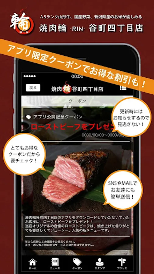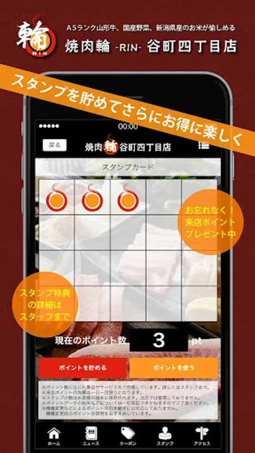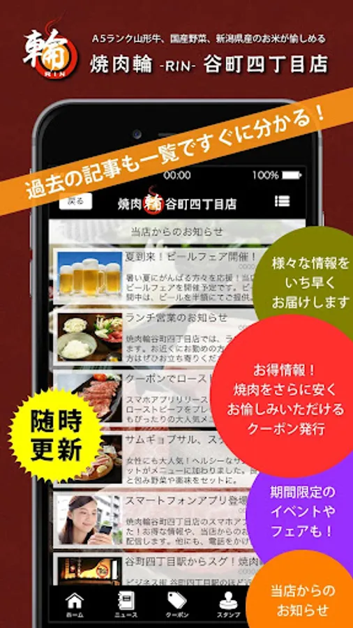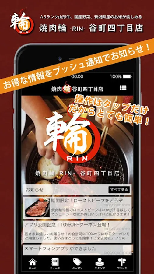 ビジネス街、谷四にある「焼肉輪谷町四丁目店」の公式アプリが登場しました!