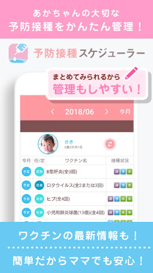 It is an application to support vaccination of children who have many kinds and schedule management is difficult.