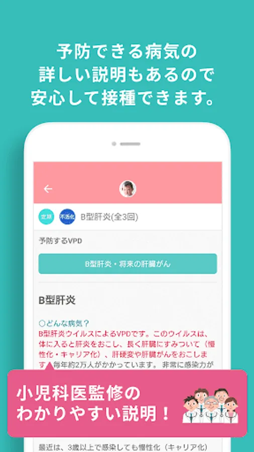 * This smartphone app is used as an aid to schedule management. Please consult with your doctor before deciding on the actual vaccination schedule.