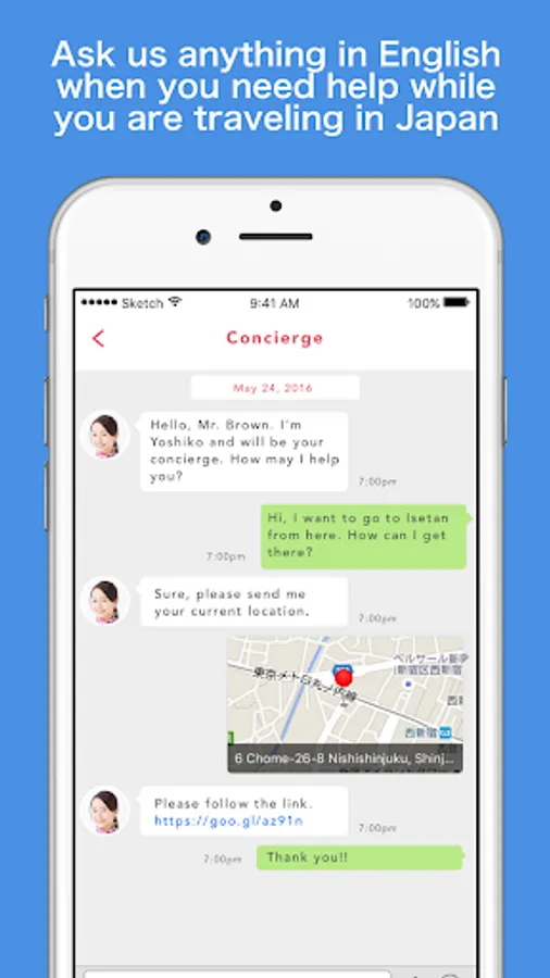 With YOKOSO Japan, you can chat with our professional concierge in English and ask any questions before or while you are traveling to Japan. You can ask anything from making reservations at restaurants, tours, activities for you and even get directions when you get lost.