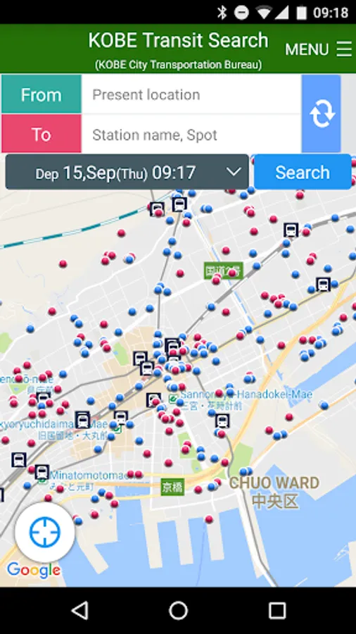 It is possible to transfer search of public transportation in the city with smartphone. You can see time required from your place to the place where tap on the map and set to the departure or destination place.