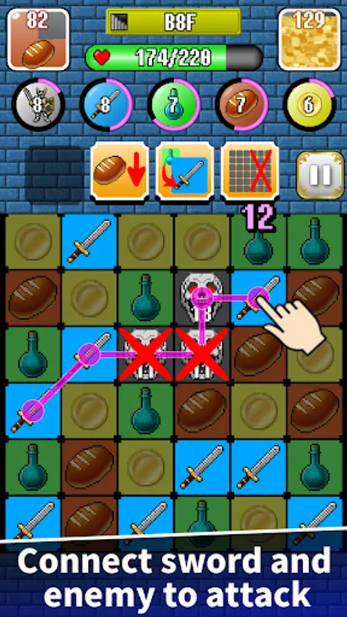 Defeat enemies and advance through dungeons in a simple match-3 puzzle.
