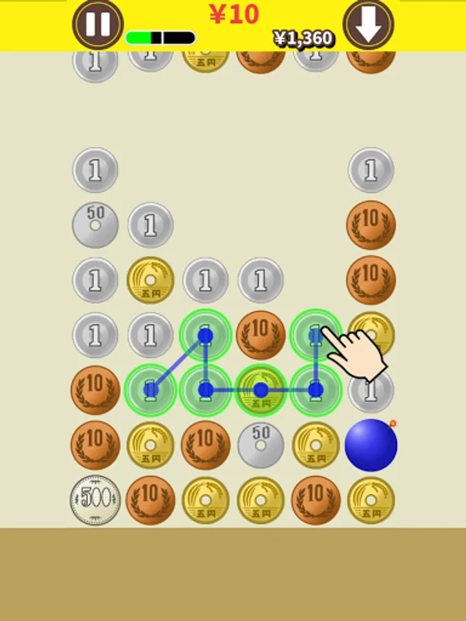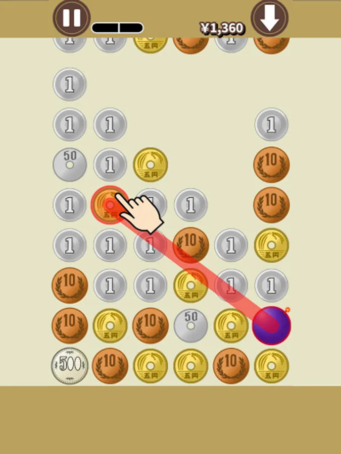 A puzzle game in which you trace coin(Yen) and exchange money.