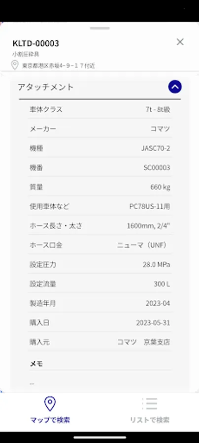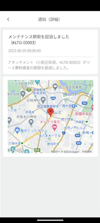 ● The attachment location displayed in this application is the location information acquired by the GPS of the tracking device attached to the attachment, and may differ from the actual location.