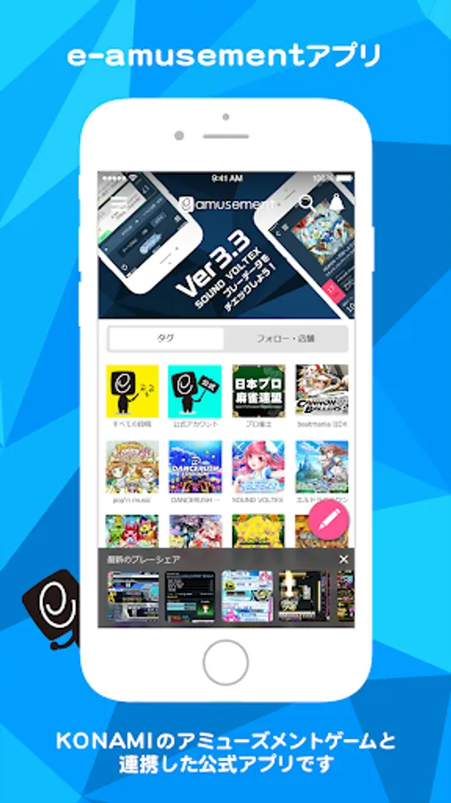 The e-amusement application is an official application that makes KONAMI's arcade game more fun.