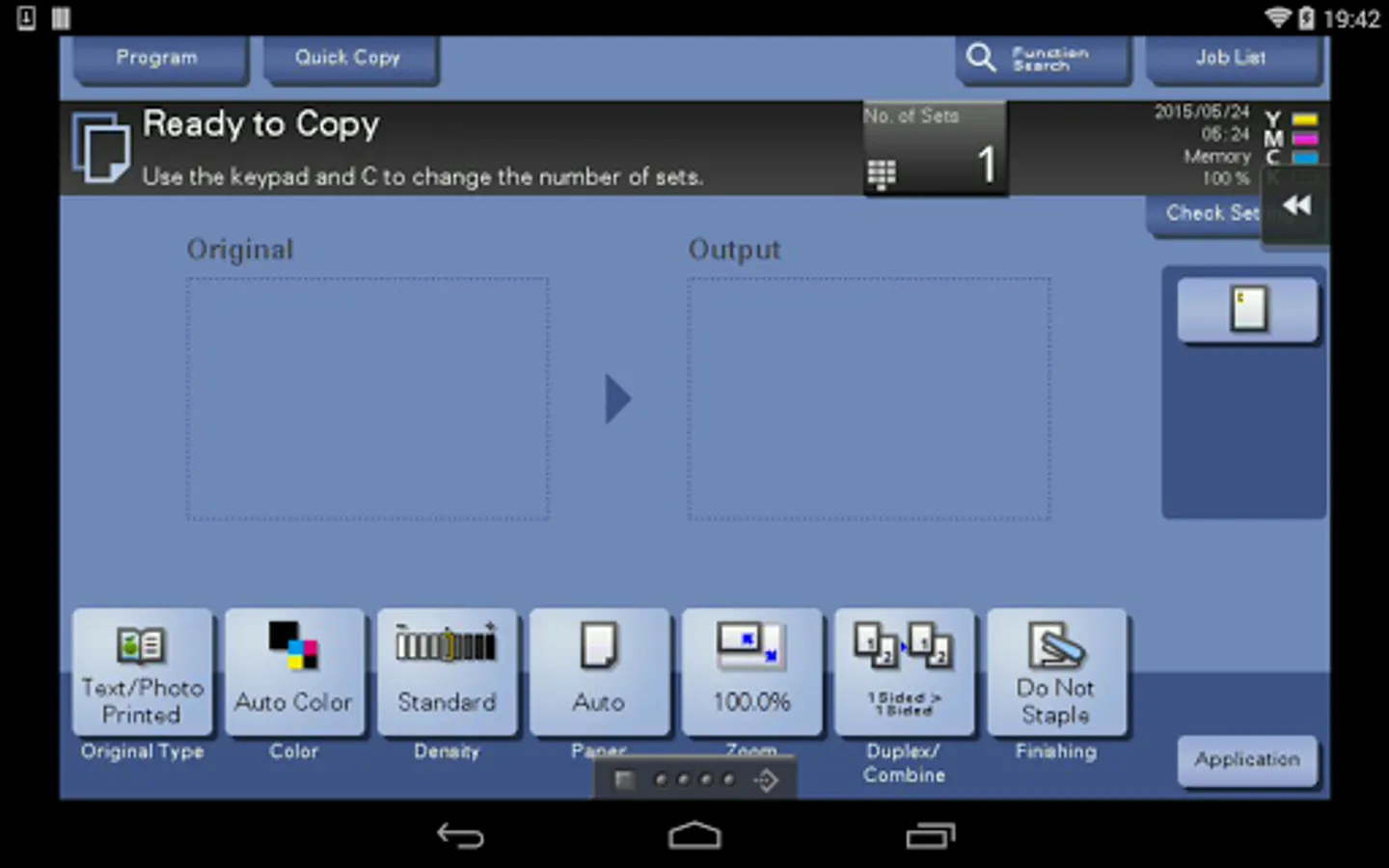 -Enables remote operation by displaying the MFP panel screen on the Android screen.