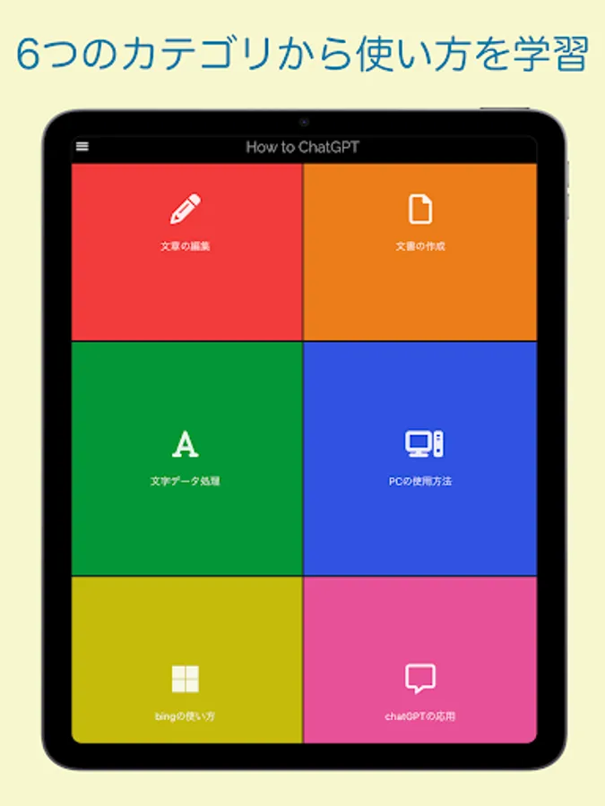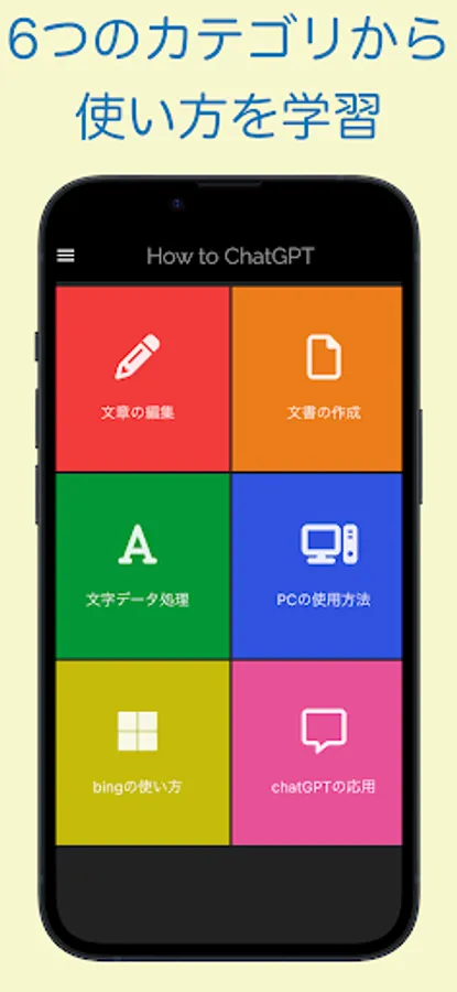 This app is divided into 6 categories, which are further divided by theme, so you can systematically learn how to use ChatGPT.
