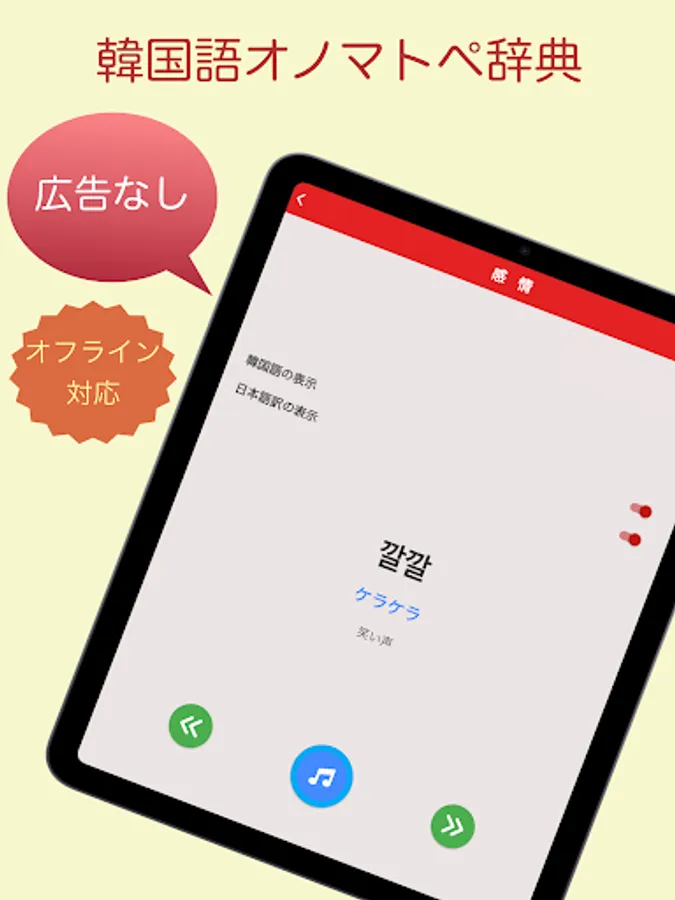 You can check Korean onomatopoeia anytime, anywhere because there are no advertisements and it can be used offline.