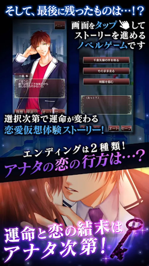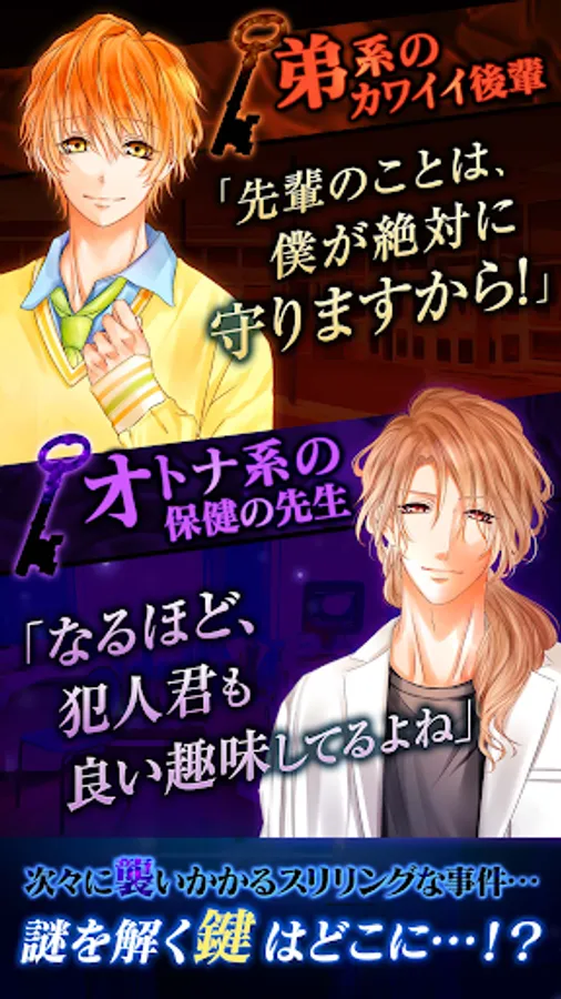 ・あなたが主人公になって、イケメンと一緒に謎解きしながら楽しめる「恋愛仮想体験ストーリー」です。