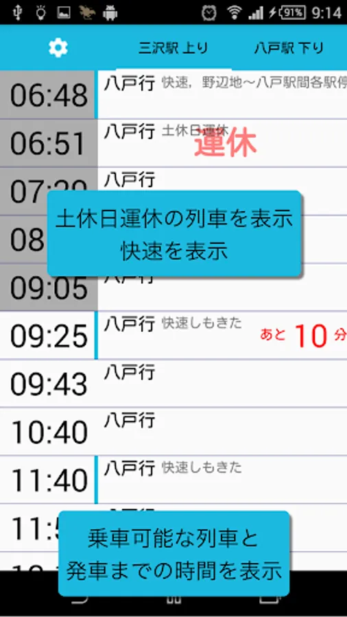 青い森鉄道線を走る列車の時刻表を表示するアプリです。