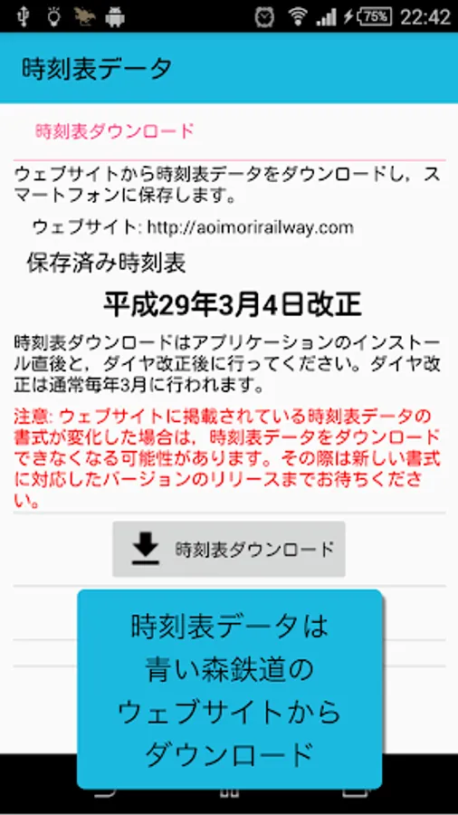 ・本アプリは青い森鉄道株式会社がインターネット上に公開している時刻表データを利用しています。