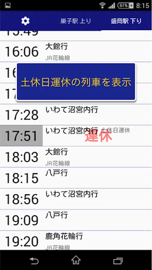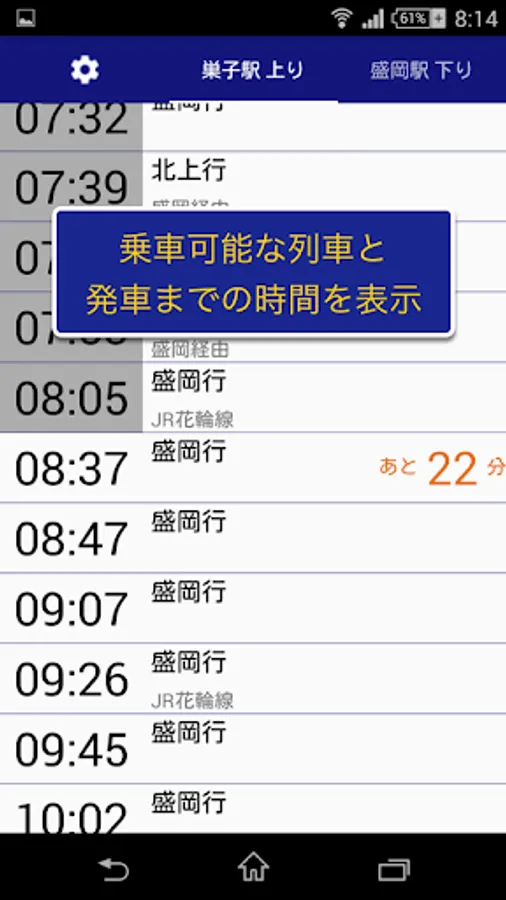 It is an application that displays the timetable of trains running on the IGR Iwate Ginga Railway Line.