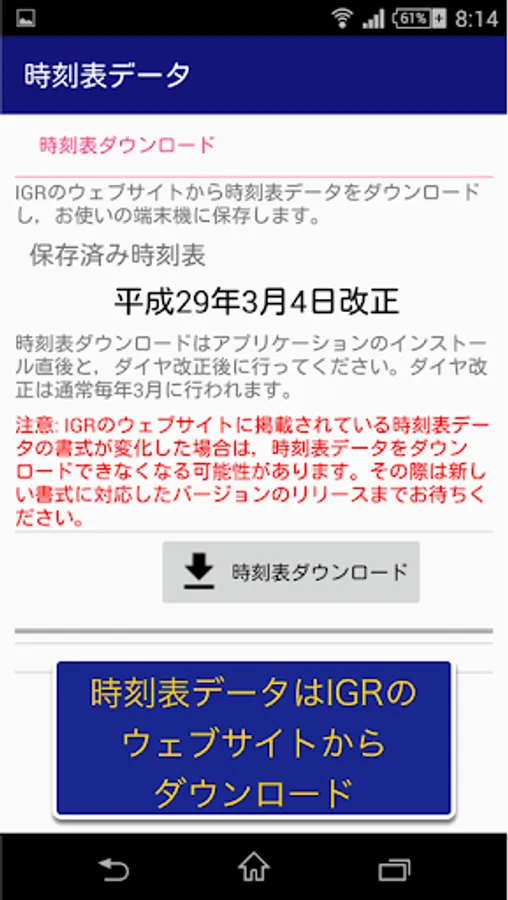 -The author is responsible for the timetable displayed by this application, and IGR Iwate Ginga Railway Co., Ltd. is not responsible.