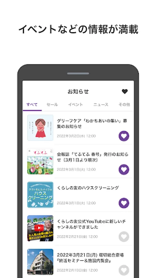 Advantageous coupons and event information of Kurashi no Tomo Group