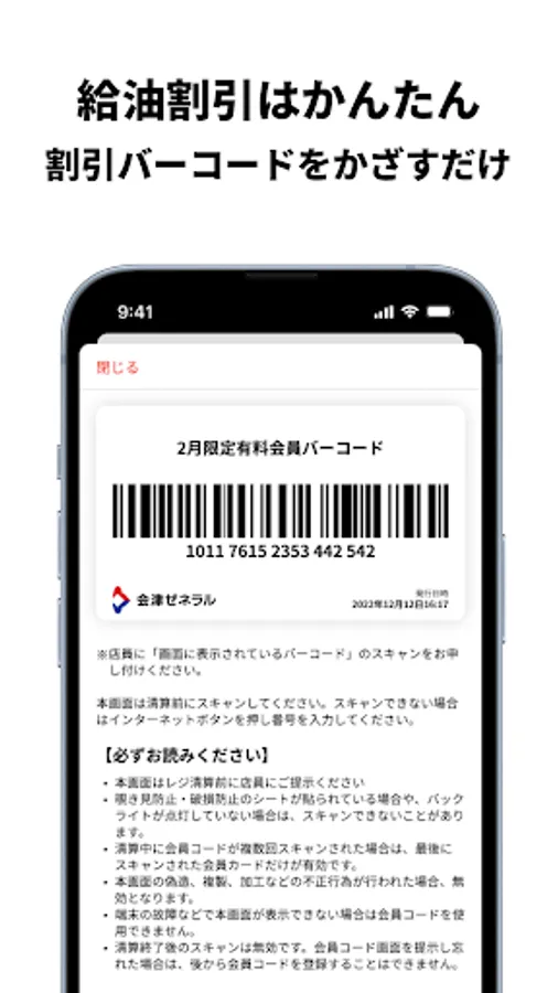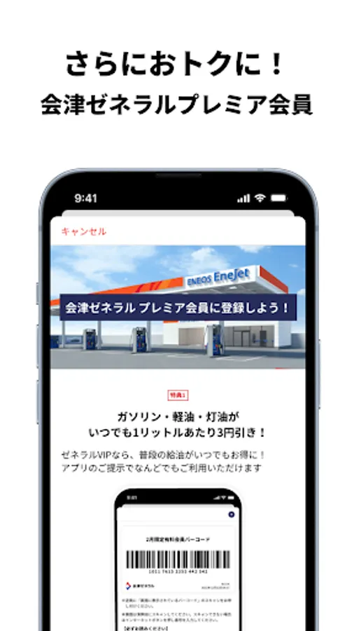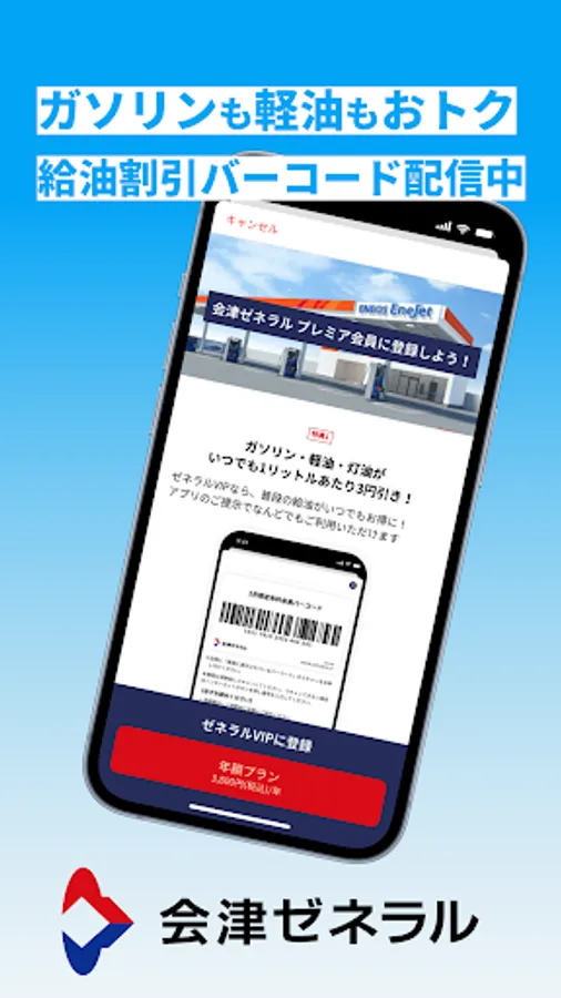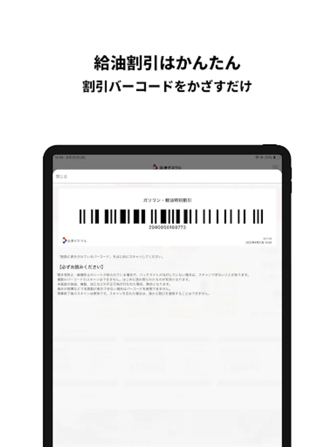 Use the in-app bar code to get a 3 yen discount per liter at any time! !