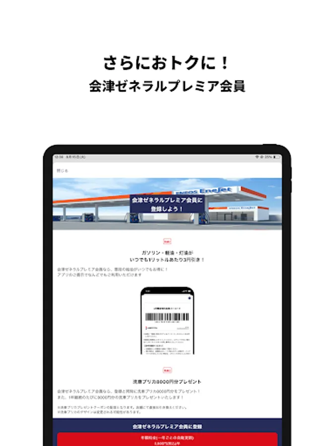 The app is basically free to use, but if you register as a paid service "Aizu General Premier Member", you can receive even more advantageous services.