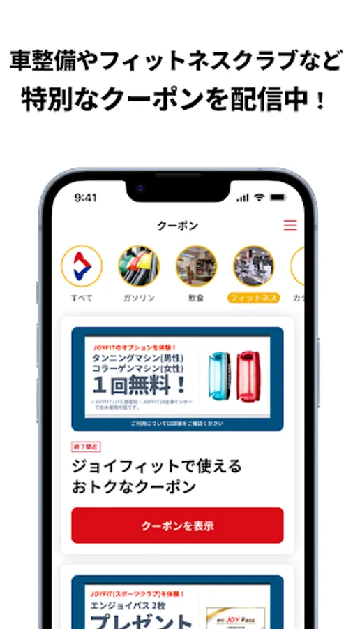 ■At the same time as registration, you can get 8,000 yen discount on car wash prepaid cards or 1,000 yen discount on JOYFIT monthly fee for 8 months!
