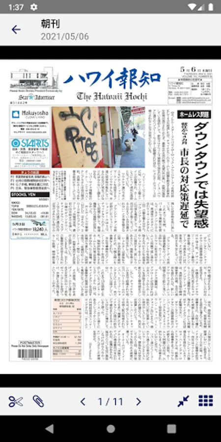 ・ After launching the app, select the date and the page you want to read and tap it to return to full screen display. You can also zoom in and out by pinching.