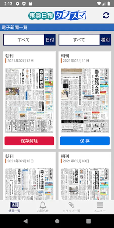 "[Service content] You can read the Tooku Nippo morning and evening edition of the last week, some reprint special features, extras, etc. Some advertisements are not seen. Enlarge or reduce the page, tap or swipe 1 In addition to turning pages one by one, you can use the page list function to jump directly to the page you want to read.