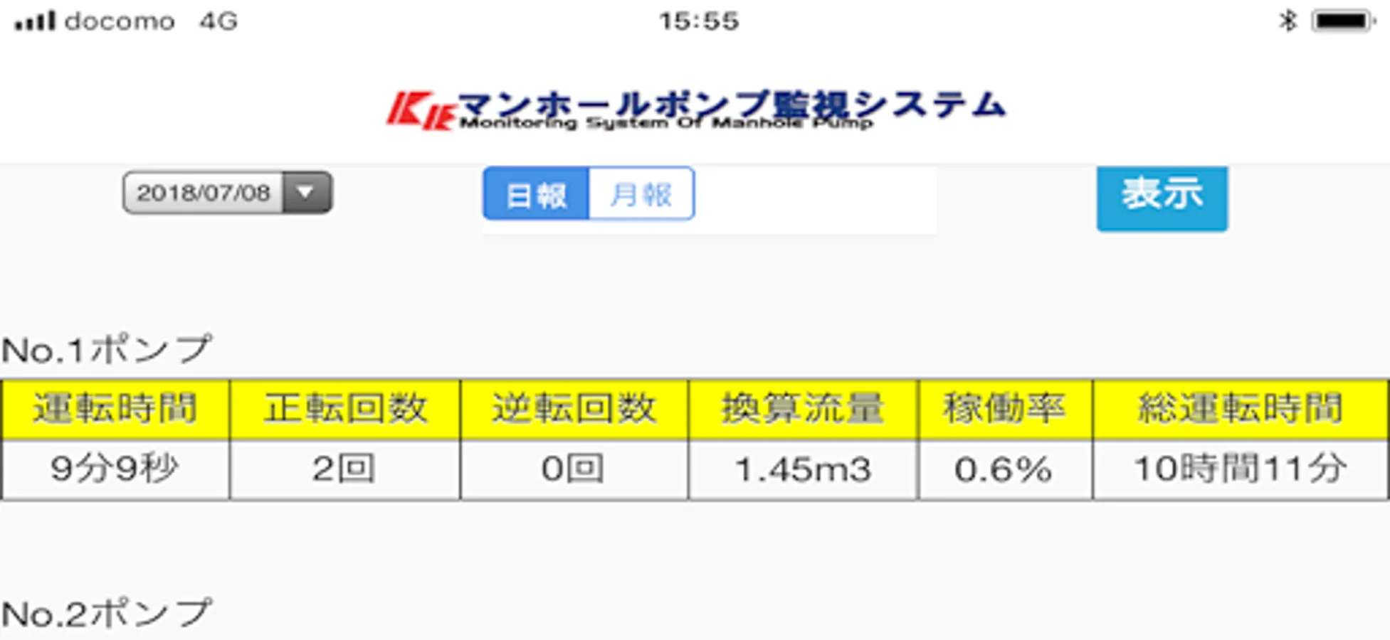 And then display the data. Operating time, number of times, converted flow rate is the total of one day,