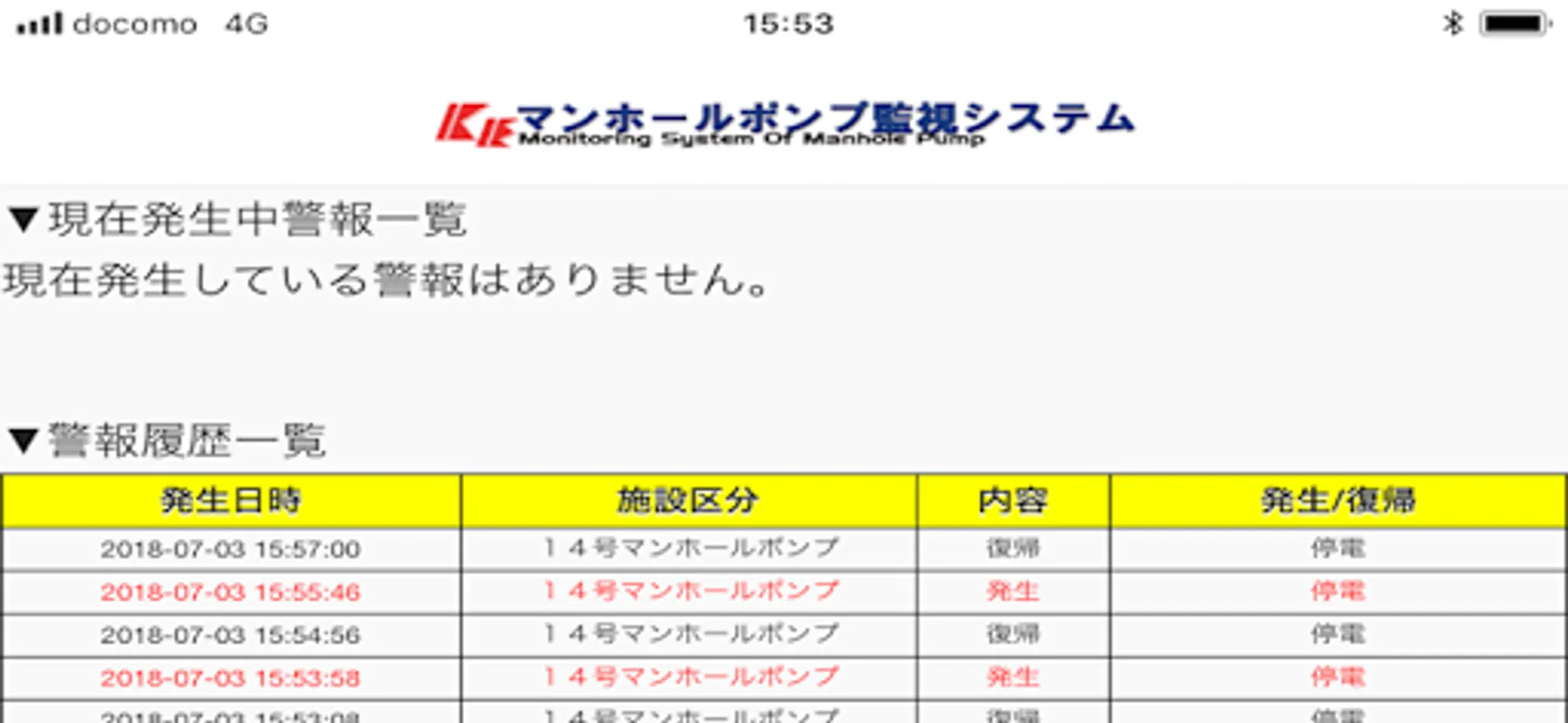 Display the history of alarm occurrence/recovery. Search by specifying a time