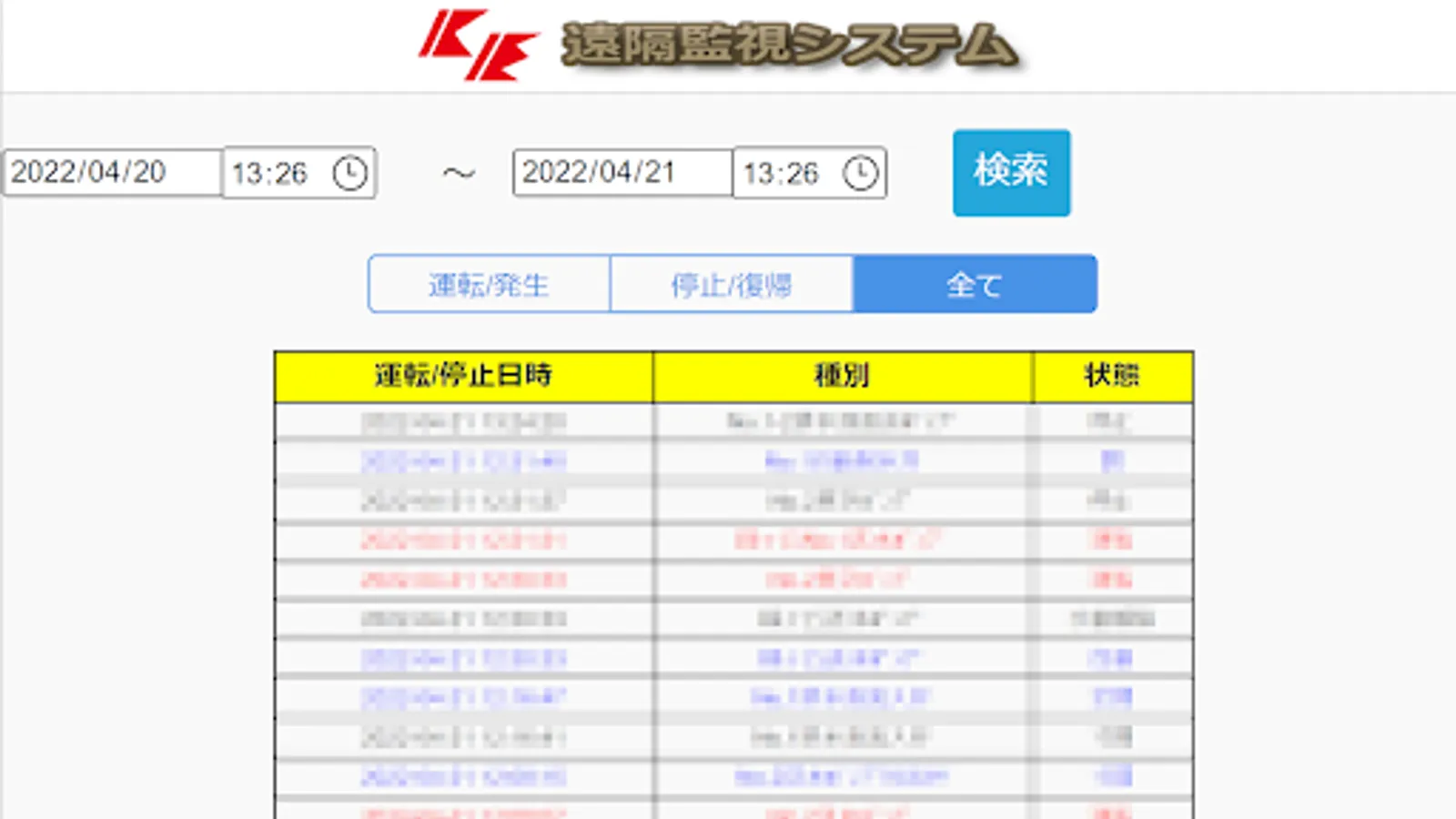 Displays the alarm occurrence / recovery history. Perform a search by specifying a time
