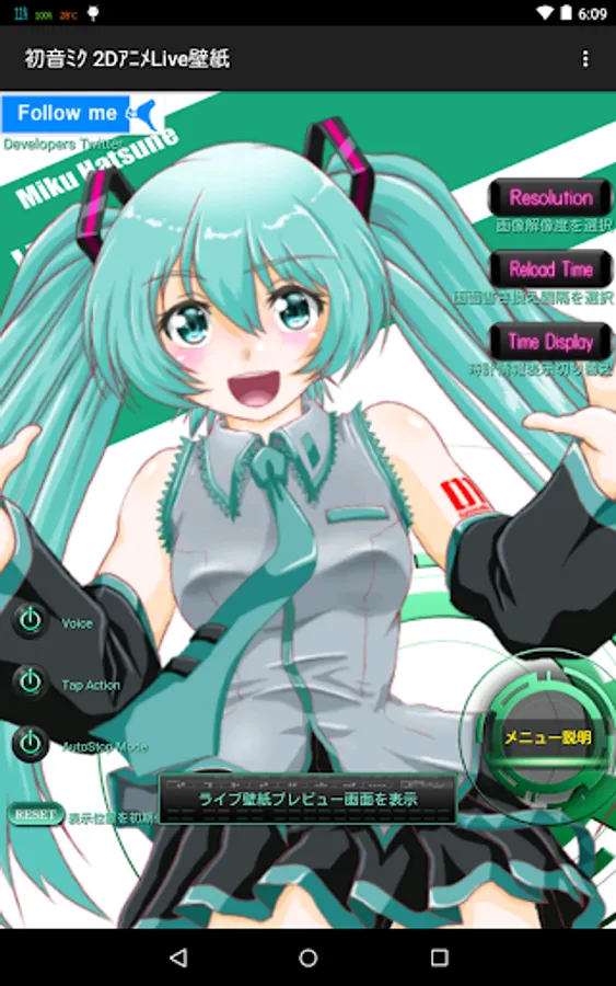 Also by turning on [AutoStopMode] on the setting screen, animation of Miku will automatically stop after a certain time.