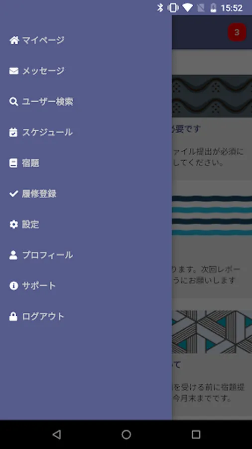 課題の確認・提出をしたり、履修登録をしたり、担当講師に質問メッセージを送信することが可能です。