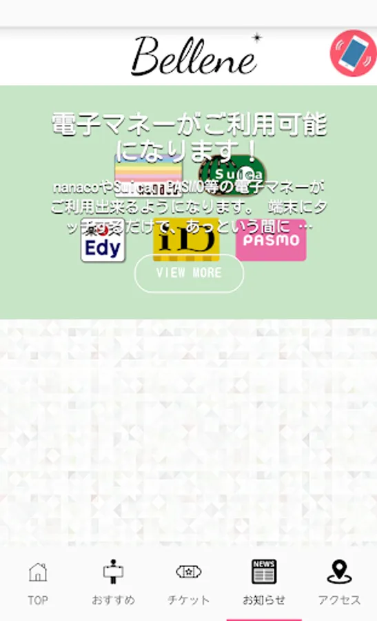 Bellene application is the official application of beauty shop "Bellene" in Kokubi-cho, Aoba-ku Sendai shi, Miyagi prefecture.