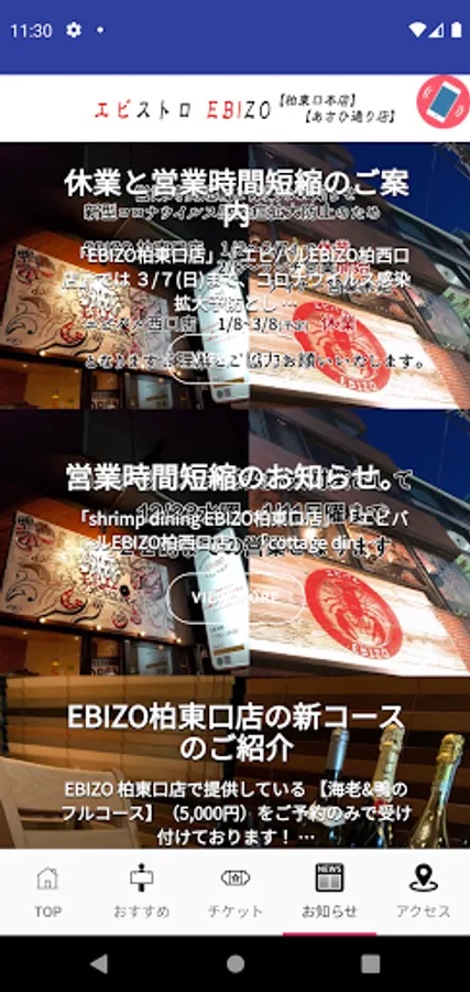 The EBIZO app is the official app of the French restaurant "EBIZO" located in Chuo-cho, Kashiwa City, Chiba Prefecture.