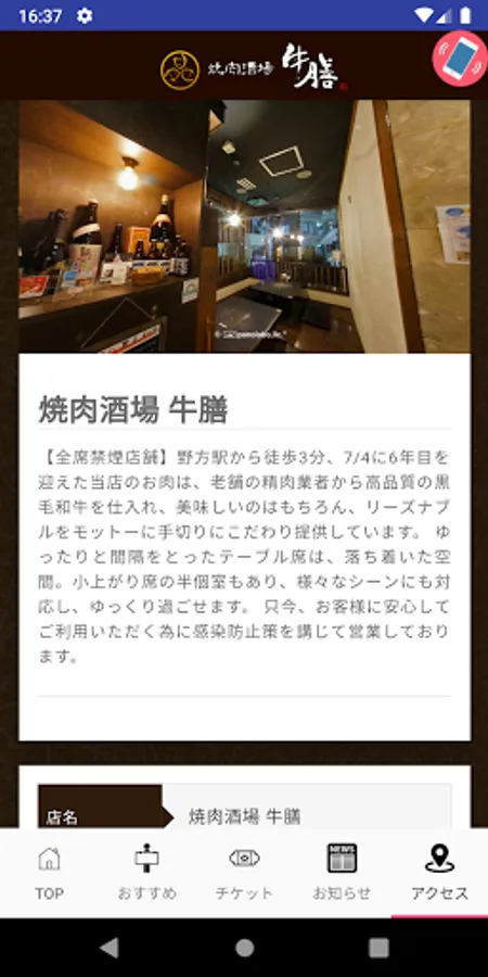 The Gyuzen app is the official app of the yakiniku restaurant "Gyuzen" in Nogata, Nakano-ku, Tokyo.