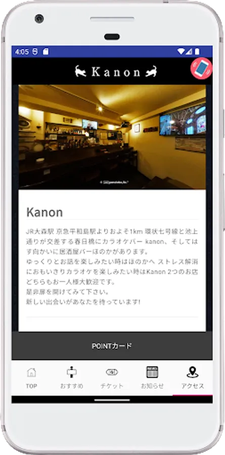 The Kanon Kasugabashi app is the official app for the karaoke bar "Kanon Kasugabashi" located in Sanno 3-chome, Ota-ku, Tokyo.