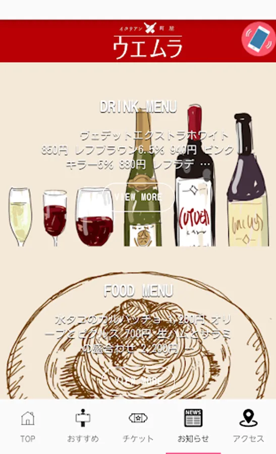 Uemura app is the official app of the Italian "Uemura" in the Arakawa-ku, Tokyo Arakawa.