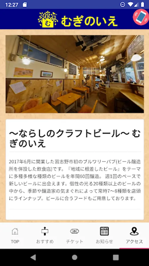 The Mugi's House app is the official app for the homemade craft beer pub "Mugi no Ie" located in Yatsu, Narashino, Chiba Prefecture.